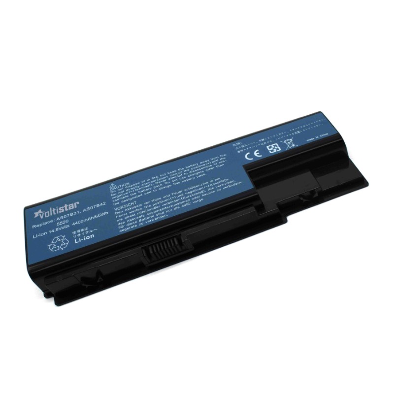 Bateria de substituição compatível com vários modelos Acer Aspire. Voltagem de 14.8 volts, capacidade de 4400 mAh, com 6 células. Verifique a voltagem da bateria original antes de encomendar.