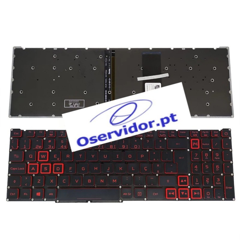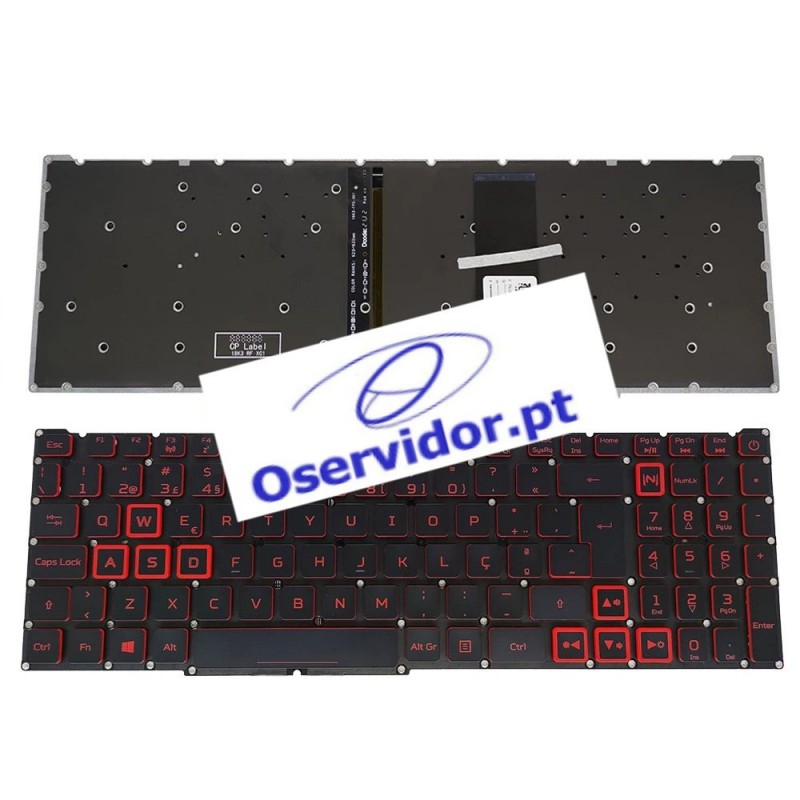 Teclado em português retroiluminado vermelho compatível com Acer Nitro 5 séries N18C3, N18C4, AN515, AN517 e AN715. Layout PT-PT, ideal para substituição em portáteis Gamer Acer Nitro.