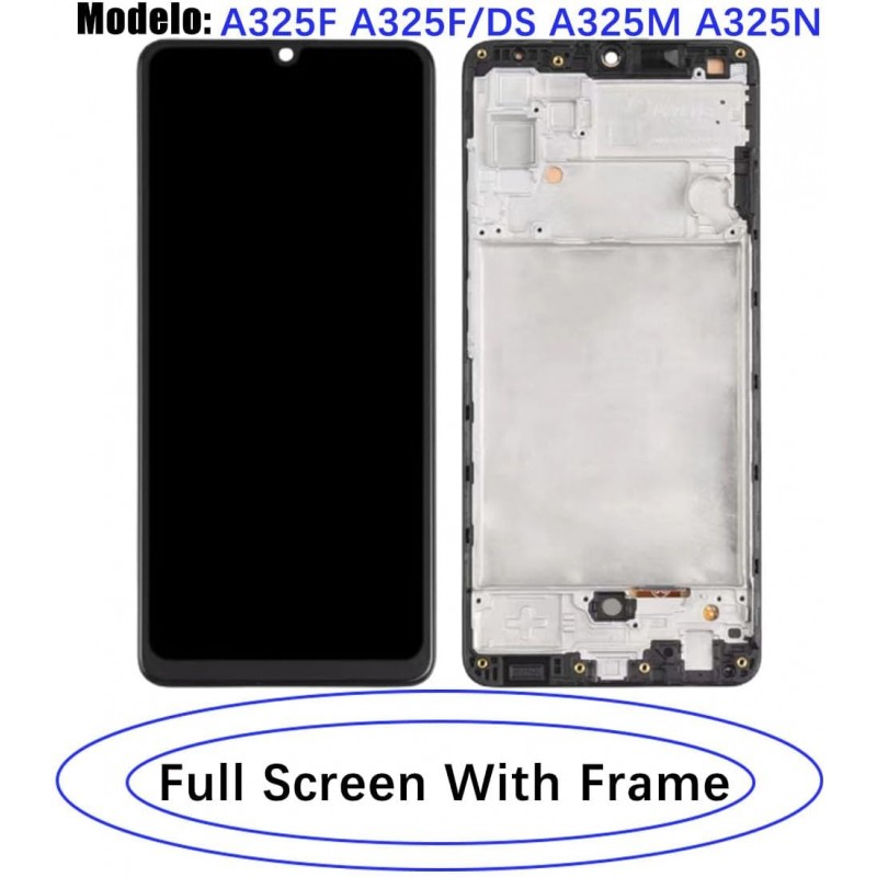 Ecrã de substituição LCD TFT para Samsung Galaxy A32 4G, compatível com modelos A325F, A325M e A325N. Inclui moldura preta e kit completo de ferramentas para instalação.