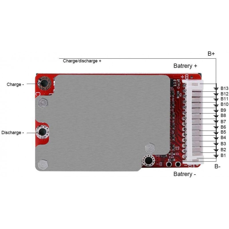Placa BMS de Proteção para Baterias de Iões de Lítio 13S 48V/54.6V - Ideal para Bicicletas Elétricas