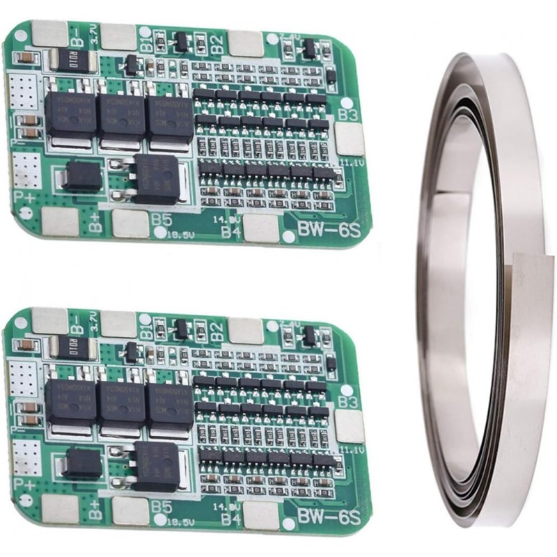 Pack de 2 Placas de Proteção de Bateria de Lítio 6S 15A 24V - Módulo de Carregador BMS com Tira de Níquel