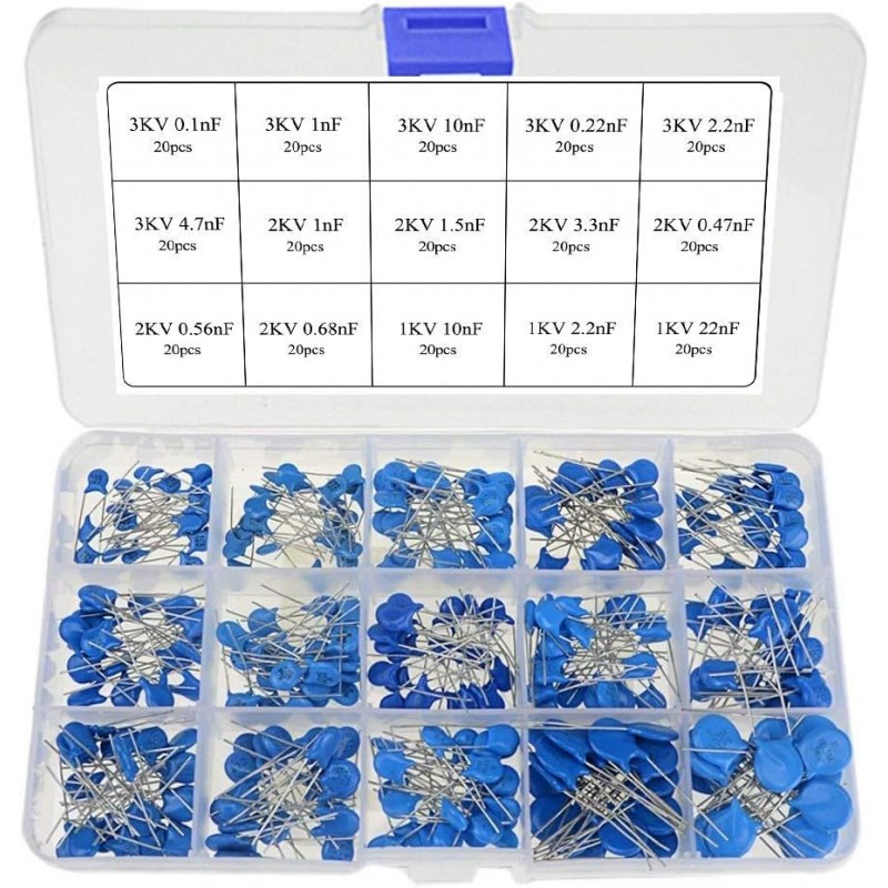 Kit de Capacitores de Disco de Cerâmica de Alta Voltagem: 300 Peças em 15 Valores - Essencial para Projetos Eletrónicos