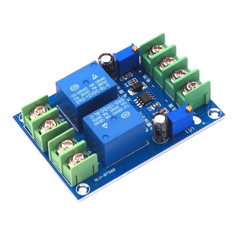 Conta com dois relés de 10A e ajuste de tensão de início e corte da carga através de potenciómetros integrados. O módulo é ideal para aplicações onde seja necessária uma comutação automática entre fonte e bateria, como em sistemas de segurança, UPS caseiras, iluminação de emergência, entre outros.