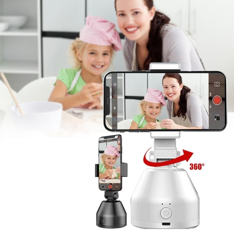 Suporte para telemóvel com rotação ilimitada 360º que lhe permite detetar gestos, colocar o telemóvel horizontal ou verticalmente, rastrear objetos, rastreamento em tempo real, reconhecimento facial e fotografia inteligente.