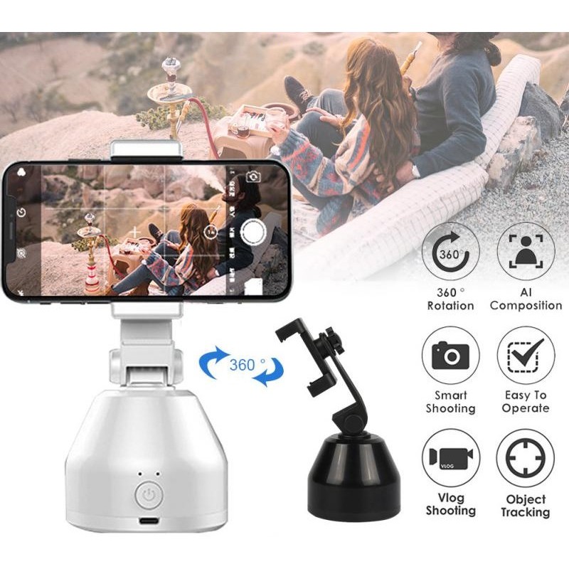 Este suporte de telemóvel é uma combinação de selfie stick, tripé inteligente, robot cameraman e suporte para telemóvel, com uma rotação ilimitada de 360º para detetar gestos, colocar o telemóvel horizontal ou verticalmente, rastrear objetos, reconhecimento facial em tempo real e fotografia inteligente.
