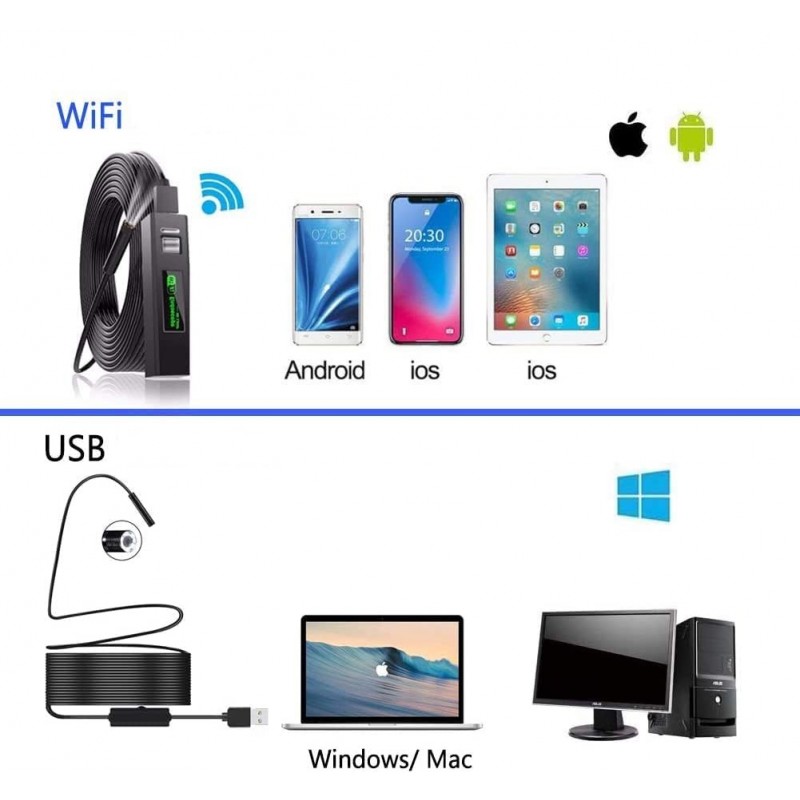 Boroscópio USB 1200P HD com Câmara de Inspeção Endoscópica WiFi Sem Fios para Android/iOS iPhone/Windows/Mac/Tablet/PC (10m)