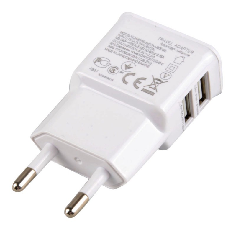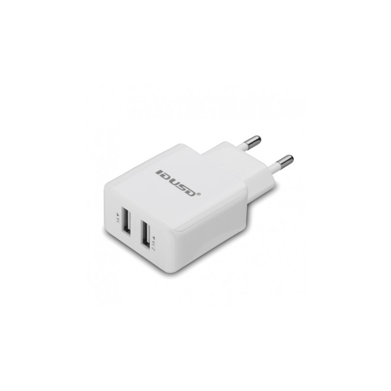 Carregador/ Adaptador de Corrente USB com 2 saídas O carregador USB permite-lhe carregar tablets, smartphones e outros dispositivos móveis carregados por USB. Utilize cabos de adaptador USB adequados ou o seu cabo de carregamento USB fornecido pelo fabricante para carregar o seu tablet, smartphone, etc... Especificações: Saída 1: 5V - 1A Saída 2: 5V - 2.1A
