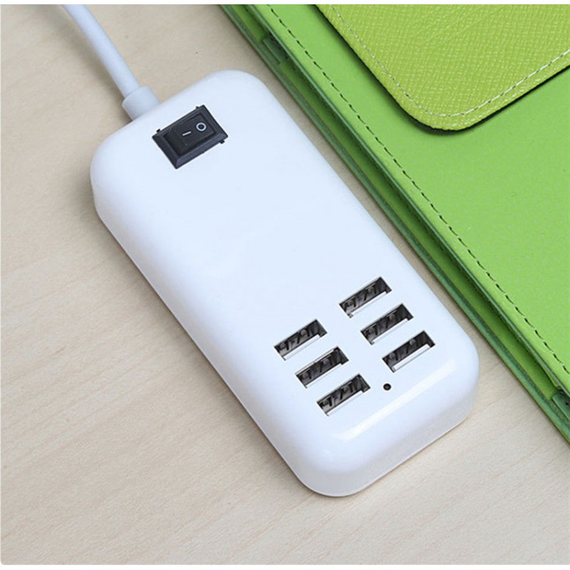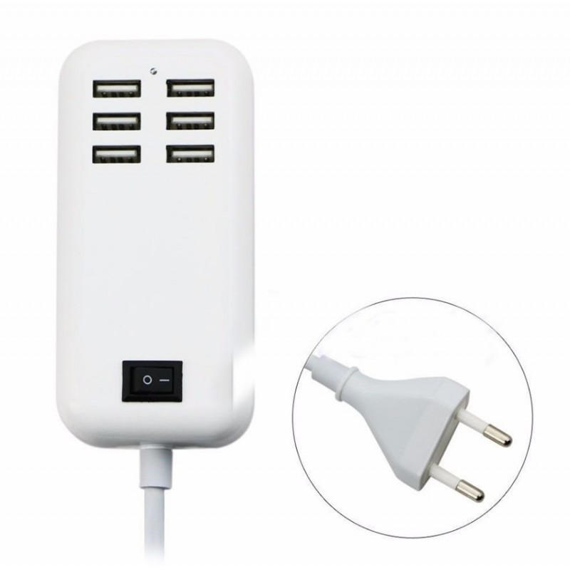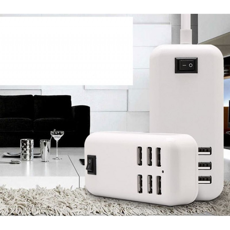 Carregue facilmente os seus dispositivos, através deste carregador com 6 portas USB para ligar à eletricidade e carregar até 6 dispositivos em simultâneo. Graças a este equipamento, pode carregar de uma só vez o mp3, a powerbank, o telemóvel, etc. e ter sempre bateria em todos os seus dispositivos.