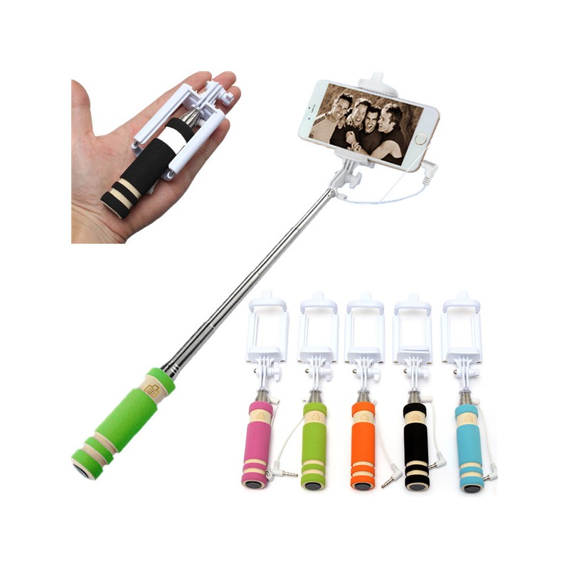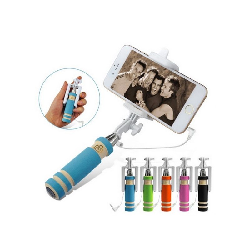 Selfie Stick - Mini monopod (Cabo de espuma) - Rosa Com cabo de ligação stereo 3,5 mm e botão obturador. Bastão extensível até 48 cm Sistemas compatíveis: Android 4.3 ou acima, iOS Tamanho compatível: Largura de 5.5 cm-8.5 cm