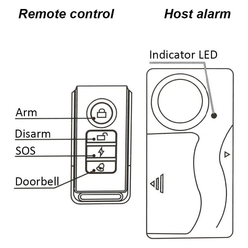 Cada alarme vem equipado com um controlo remoto, permitindo ativar e desativar o sistema até uma distância de 25 metros.