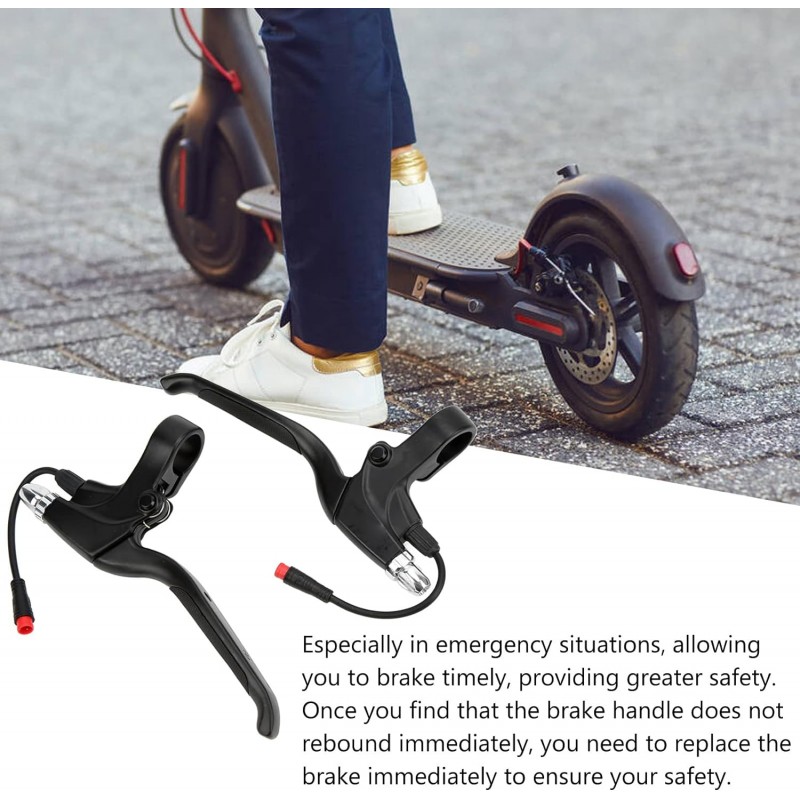Material de liga de alumínio: a alavanca de travão é feita de material de liga de alumínio de alta qualidade, com alta dureza, leve e durável, e não é fácil de danificar. A alça também é revestida de borracha e antiderrapante. Grande tensão e equilíbrio: esta alavanca de travão tem uma grande tensão e equilíbrio para proporcionar um bom desempenho na scooter. Esta alça de travão foi especialmente concebida para scooters elétricos. Boa aderência e travagem: o design da alça permite ter em conta a aderência da scooter e a alça do travão ao conduzir, especialmente em situações de emergência, permitindo que desbloqueie mais fácil e oportunamente, sem causar problemas, proporcionando maior segurança. Substitua a a alça do travão partida: O uso do freio por um longo tempo fará com que o freio se torne insensível ou funcione mal. Depois de descobrir que a alça do travão não salta imediatamente, precisará substituir o travão imediatamente para garantir a sua segurança.
