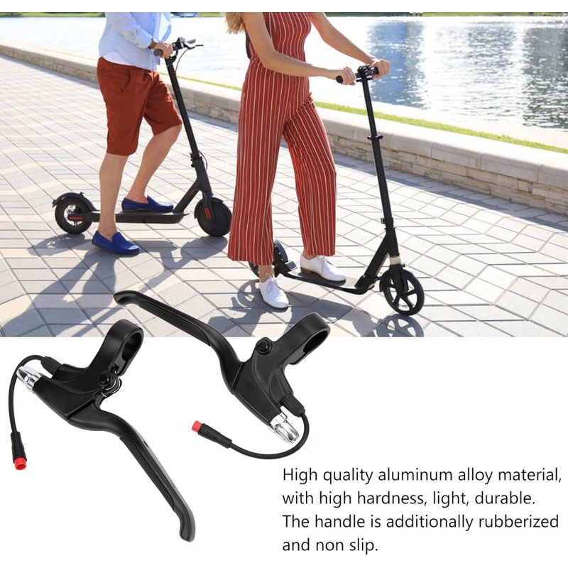 Par de alavancas de travão de alta qualidade para scooters elétricos, feitas em liga de alumínio resistente, com design ergonómico para um controlo seguro e confortável.