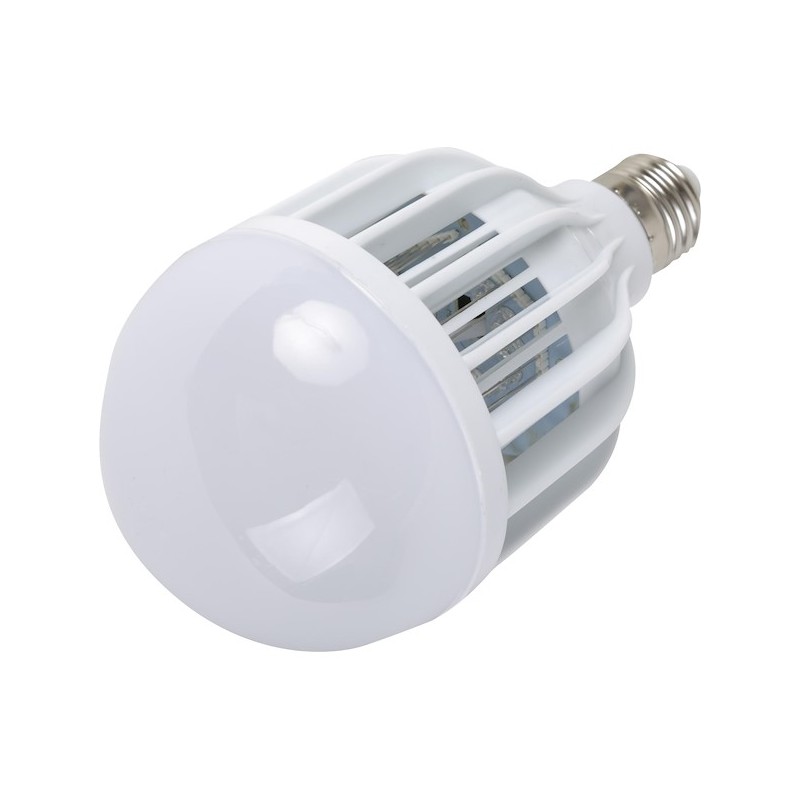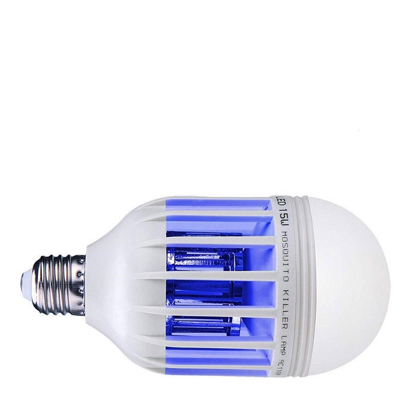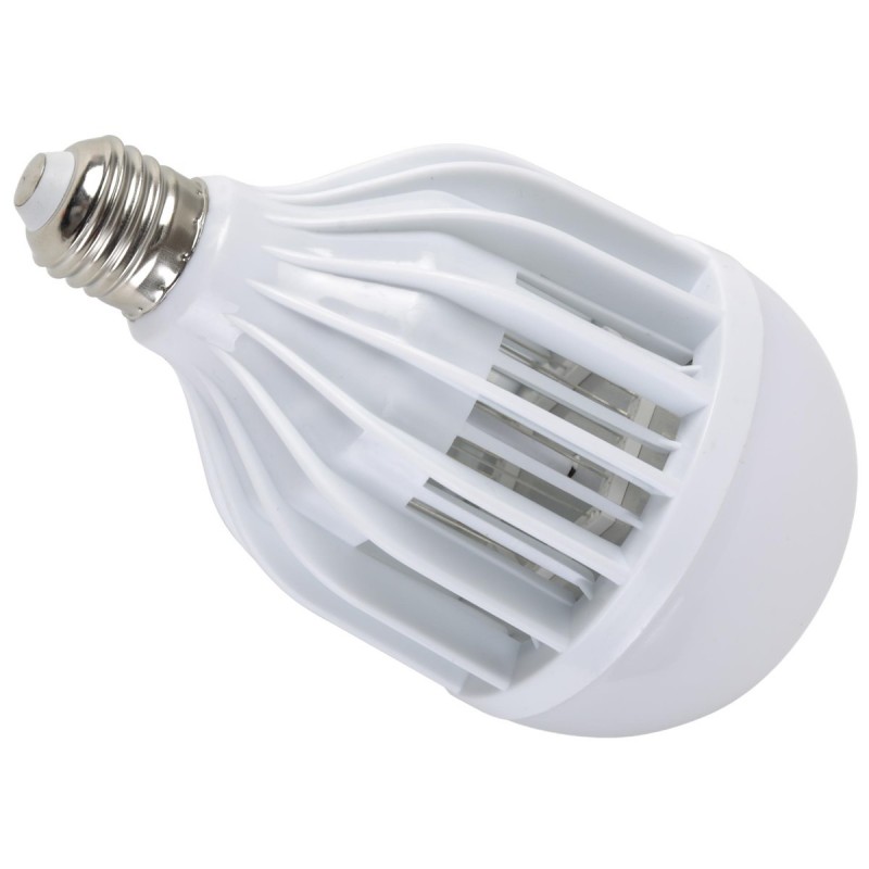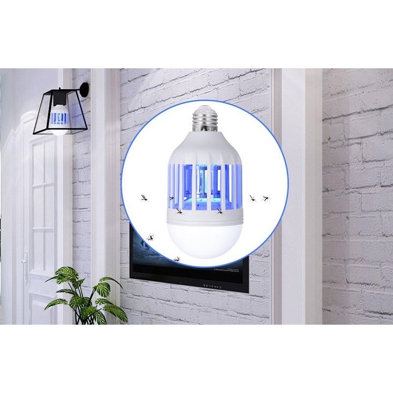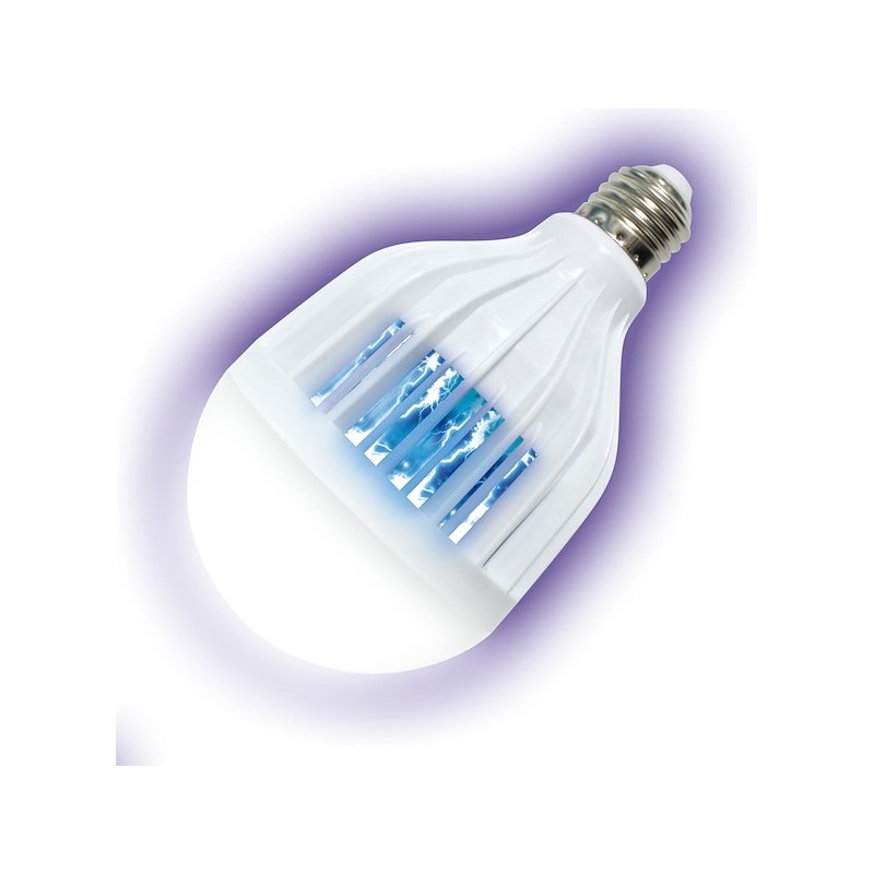 A lâmpada tem 2 modos de funcionamento, que funcionam em simultâneo: o principal, no qual funciona uma potente lâmpada LED de 9W + luz azul suave que atrai insetos e um enrolamento metálico protegido que os mata;