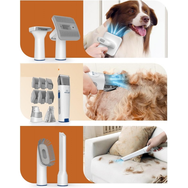 Kit de Higiene 7 em 1 para Animais de Estimação com Aspirador de Pelo – Aparador Silencioso e Completo para Cães e Gatos