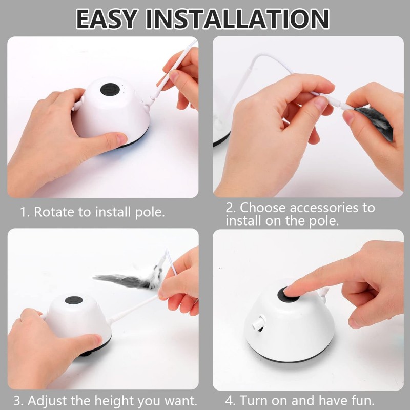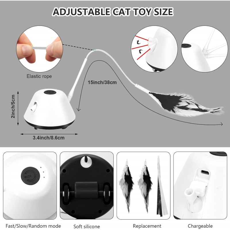 Ajustável e Versátil: Altura da barra removível e LED ajustáveis, mantendo os gatos interessados e estimulando o seu instinto de caça. Perfeito para brincadeiras independentes.