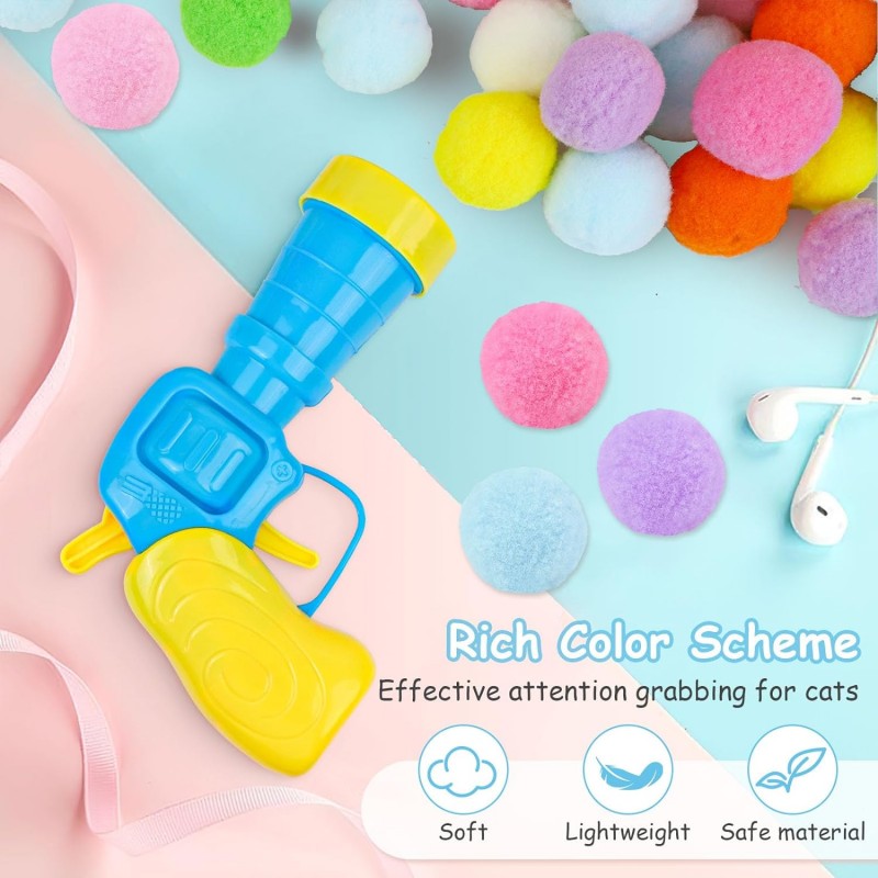 Pistola Lança Bolas de Pelúcia para Gatos - 100 Bolas Coloridas para Horas de Diversão!