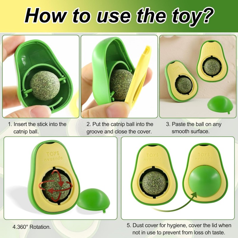 Design Inovador: Com um design giratório de 180°, estas bolas de catnip atraem a atenção dos gatos, permitindo que estes lamberem e interajam com o brinquedo de maneira uniforme e fácil.