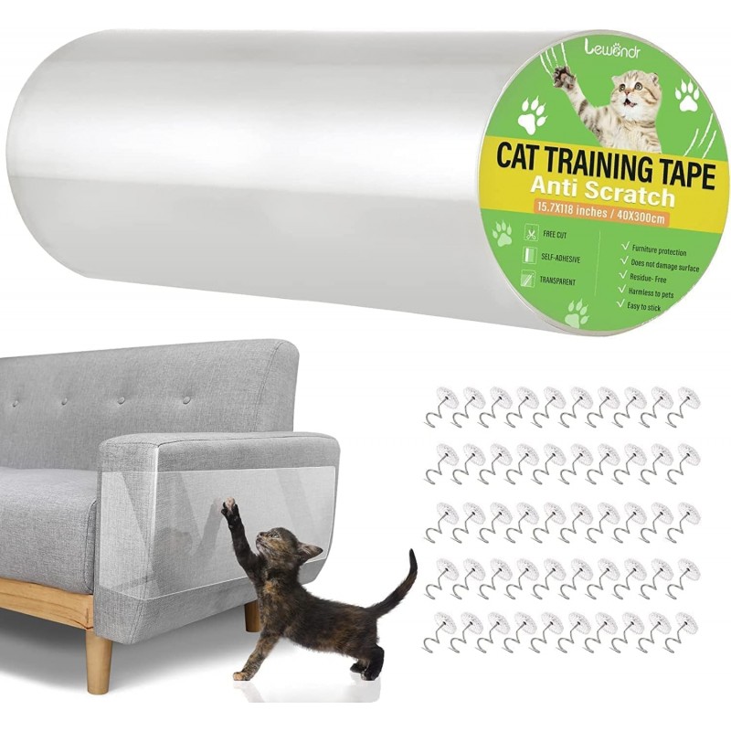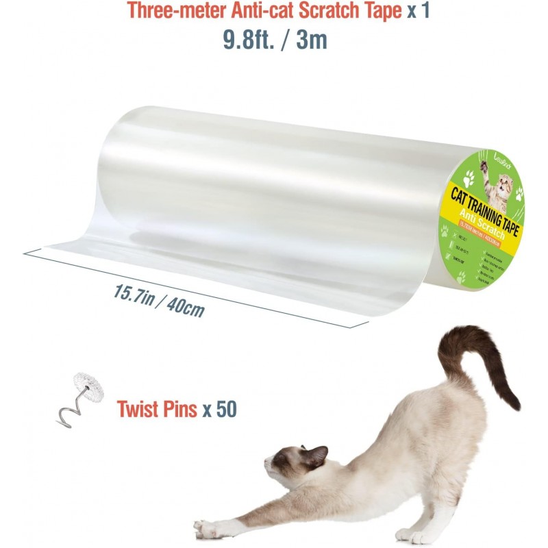 Protetor de Móveis Contra Arranhões de Gatos - Adesivo Transparente de PVC com 50 Parafusos (40x300cm)