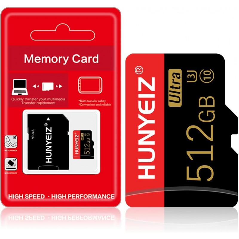Este cartão Micro SD de 512 GB Classe 10 foi projetado para fornecer desempenho confiável e velocidades de transferência ultrarrápidas.