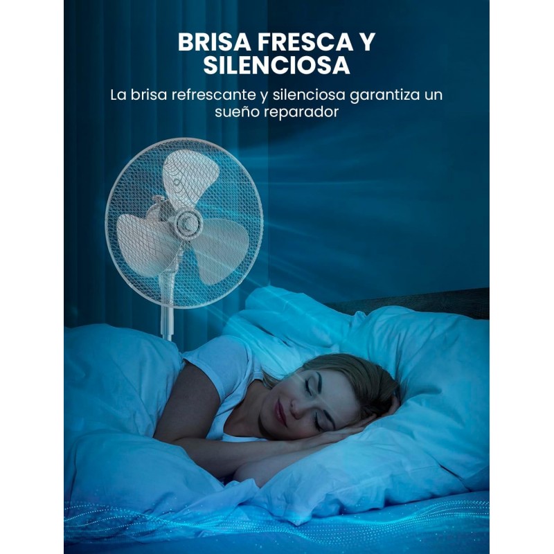 Equipada com 3 velocidades ajustáveis, permite selecionar entre ventilação suave, média ou intensa, adaptando-se às necessidades de cada momento. O seu alcance de oscilação horizontal de 90º e vertical de 24º permite distribuir o ar uniformemente por toda a divisão.