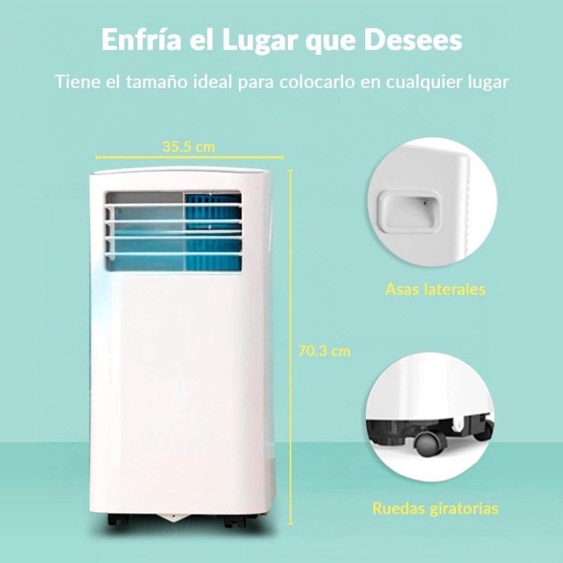 Design compacto e portátil com rodas giratórias e asas laterais, facilitando o transporte entre divisões. O ecrã LED intuitivo facilita o controlo das definições.