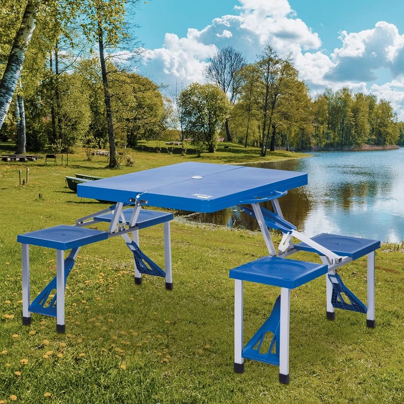 Mesa de Piquenique Portátil com 4 Assentos e Estrutura de Alumínio