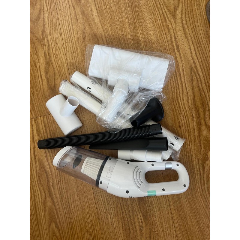 Aspirador portátil recarregável SANDA SD-4633 com potência de 120W, ideal para uso doméstico e automóvel. Inclui vários acessórios e tubo extensível para uma limpeza eficiente.