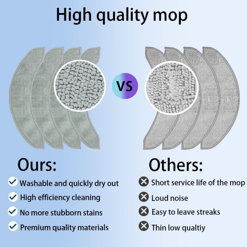 Estas almofadas são essenciais para manter o desempenho do seu robot aspirador, garantindo que a sua casa se mantenha limpa e livre de sujidade. O material de alta qualidade permite uma fácil reutilização após a limpeza.