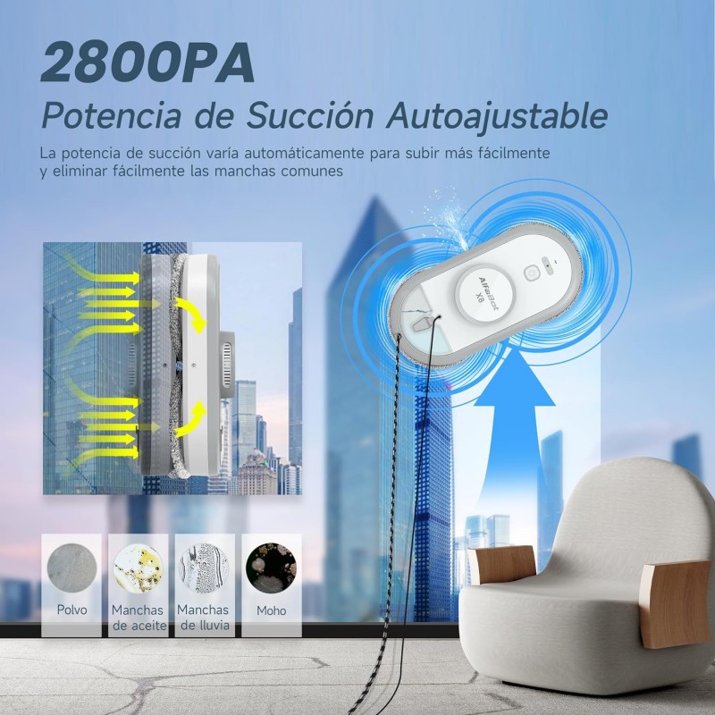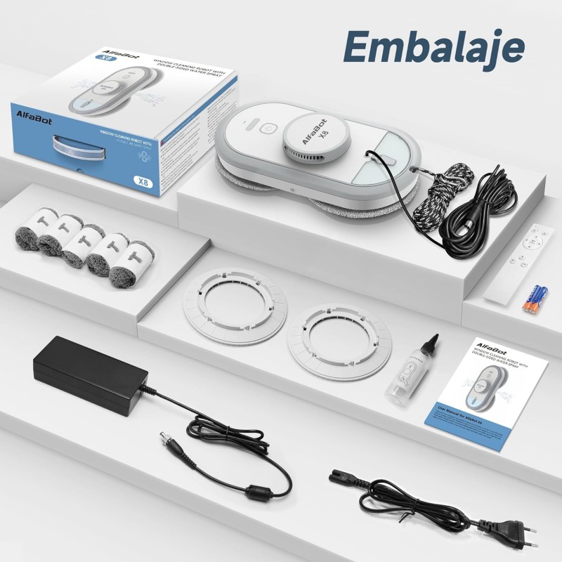 O AlfaBot X8 é um robô inovador que facilita a limpeza de janelas e outras superfícies verticais lisas. Com funções avançadas e design inteligente, este robô garante uma limpeza eficiente e sem esforço.