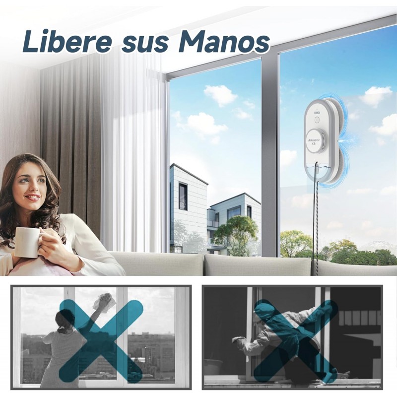 Este robô limpa-vidros AlfaBot X8 é a escolha ideal para manter suas janelas limpas e brilhantes com o mínimo de esforço.