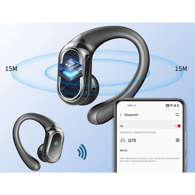 Os auriculares Bluetooth sem fios estão equipados com chips Bluetooth 5.3 de nova geração, a velocidade de transferência de dados é até 2 vezes mais rápida do que a geração anterior.
