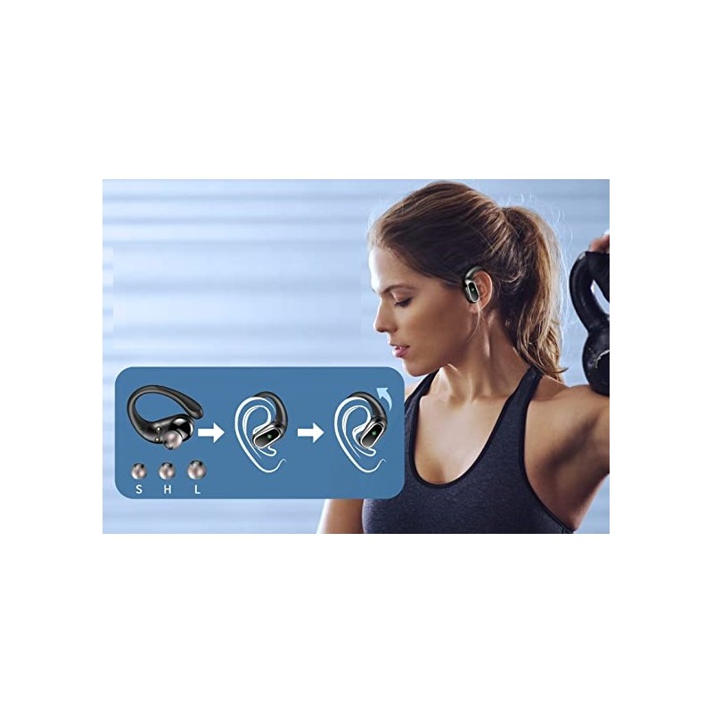 Os auriculares sem fios desportivos Q76 oferecem almofadas de silicone de alta qualidade (S/M/L) em tamanhos diferentes, que se adaptam perfeitamente aos seus ouvidos.