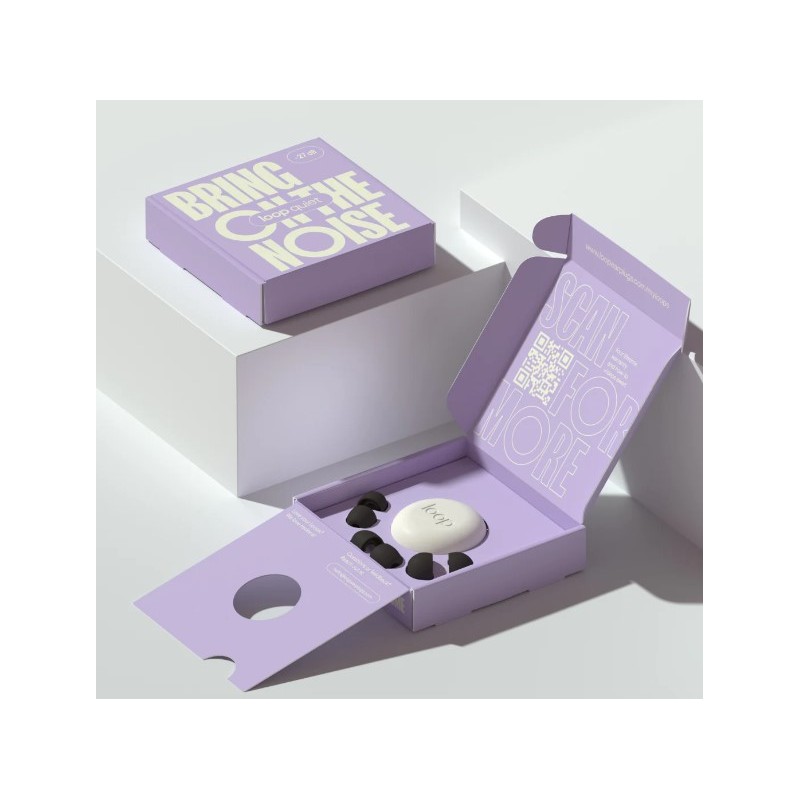 A pensar no ambiente, a nossa embalagem ecológica contém 1 conjunto de tampões Loop Quiet, 4 almofadas de silicone em diferentes tamanhos e 1 prático estojo.