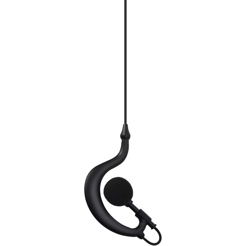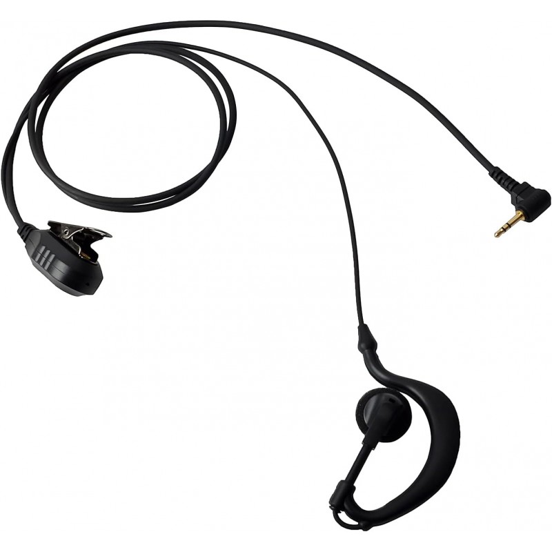 Auricular profissional tipo G com microfone e botão PTT incorporado, ideal para uso intensivo em segurança, hotelaria, restauração, eventos e ambientes com muito ruído.