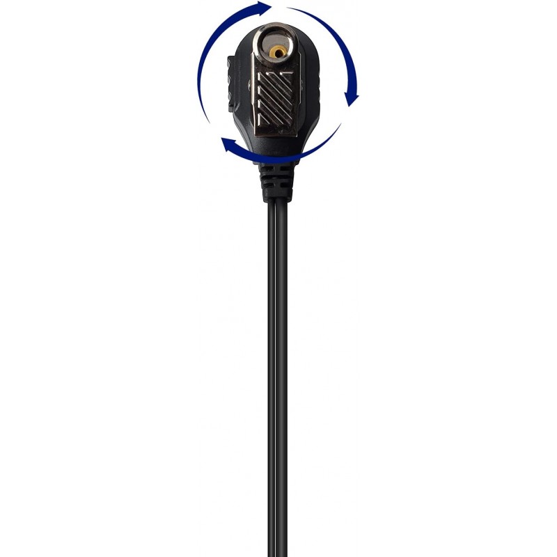 Este auricular adapta-se confortavelmente à orelha esquerda ou direita e inclui um clipe de aço giratório para fixação fácil na gola da camisa ou noutra peça de roupa.