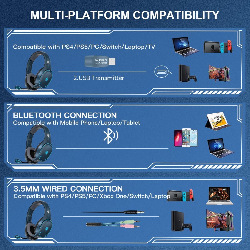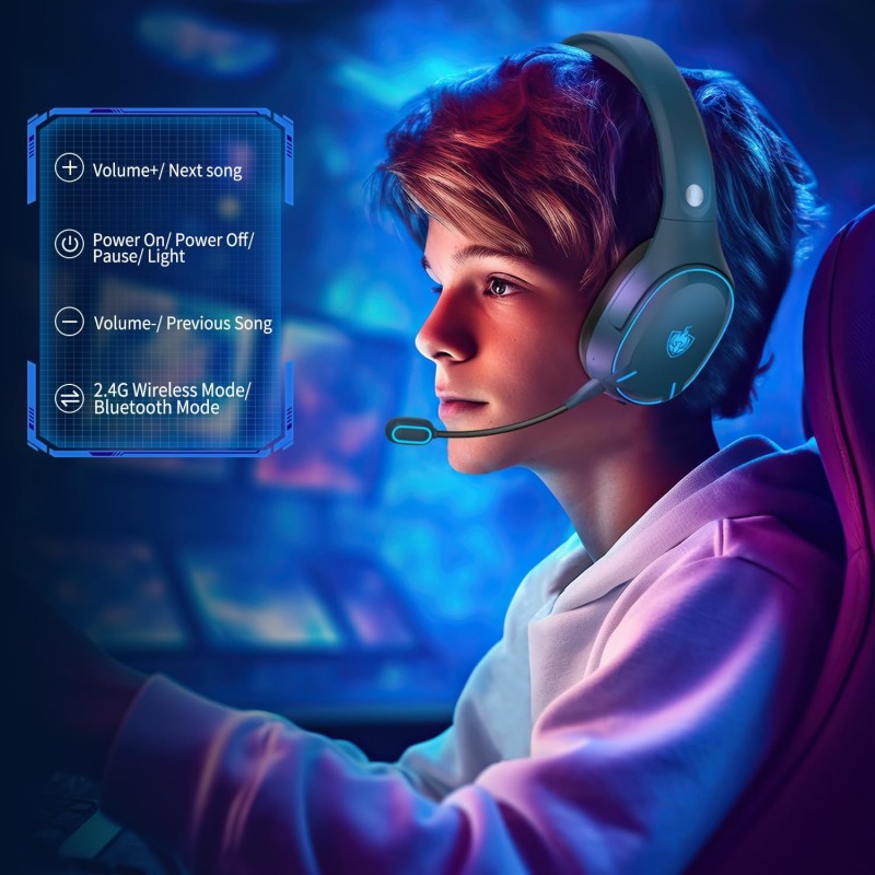 Estes auriculares gaming sem fios Q6 são a escolha perfeita para gamers que procuram versatilidade, qualidade de som e conforto. Desfrute de uma experiência de jogo sem fios com o melhor desempenho e estilo.