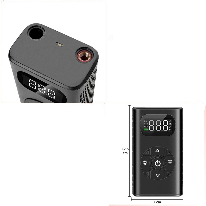 Compressor de Ar Portátil Multifuncional 10,3 Bar, 15 l/min - 5200 mA, Compatível com Válvulas Schrader/Presta/Dunlop, LED Integrado