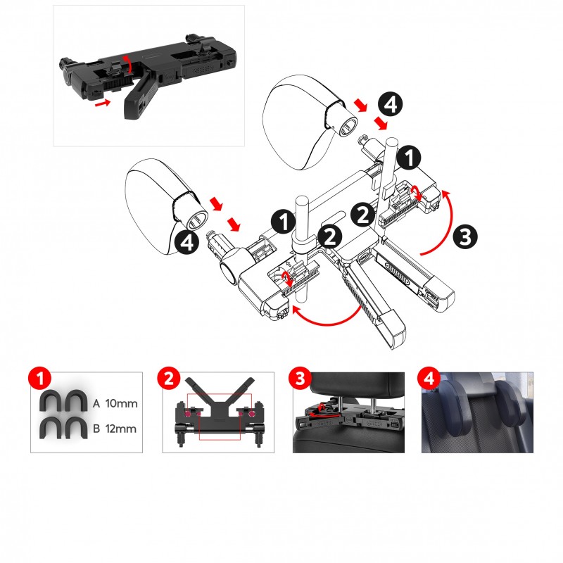 Adequado para a maioria dos assentos de carro que possuem hastes de metal ajustáveis, com largura entre 2''- 7''.