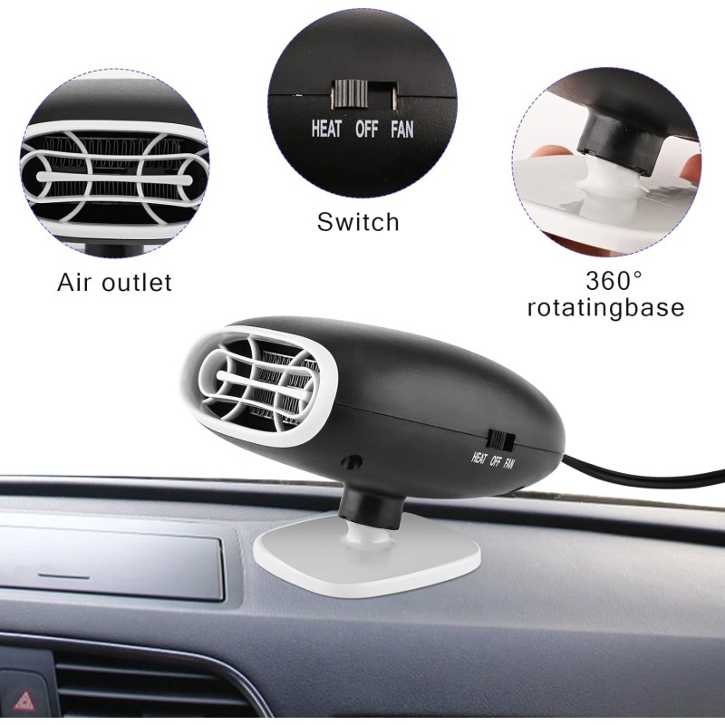 Aquecedor de Carro 2 em 1 com Desembaçador de Para-brisas de 12V - Rotação de 360 Graus e Tomada de Isqueiro