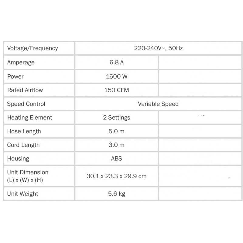 3 Bocais e Filtro Lavável: Inclui três bicos diferentes para diversas necessidades de secagem, juntamente com um filtro lavável para fácil manutenção.
