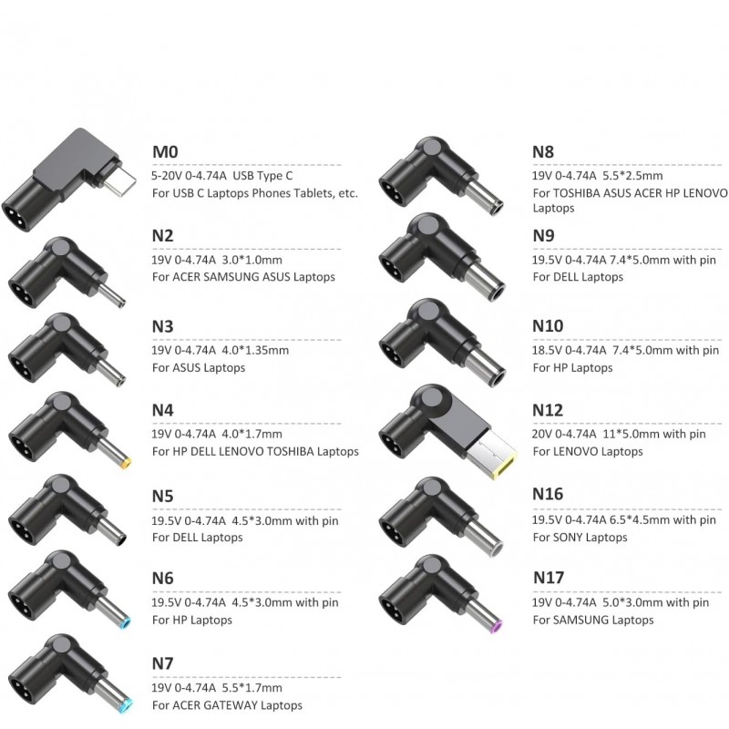 Saída de Voltagem Ampla: Oferece várias opções de voltagem, incluindo 5V, 9V, 12V, 15V, 18,5V, 19V, 19,5V e 20V, garantindo a compatibilidade com a maioria dos portáteis e dispositivos USB-C.