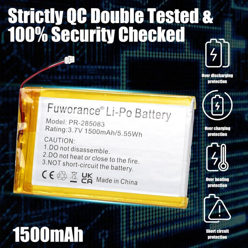 Bateria recarregável PR-285083 de 1500 mAh e 3.7 volts, compatível com vários eReaders Kobo, Pocketbook, Tolino e Nook, ideal como substituição da bateria original.