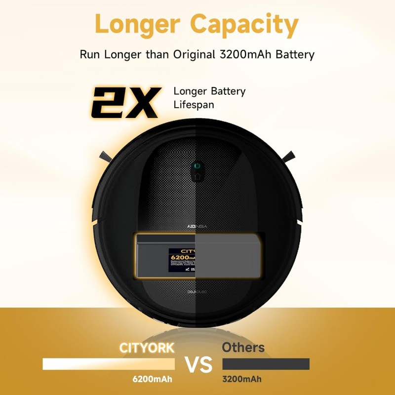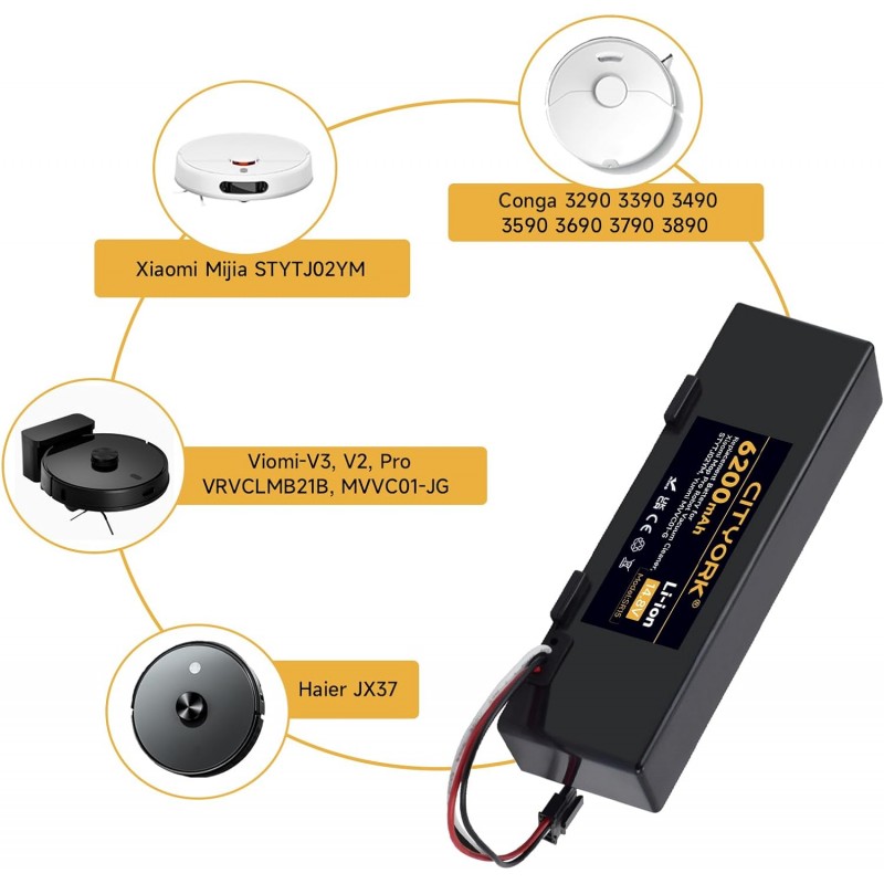 Melhore o desempenho do seu aspirador com a bateria de lítio de 14.4V e 6200mAh, desenhada para maximizar a eficiência e a durabilidade. Compatível com vários modelos Cecotec Conga, Xiaomi Mijia e Viomi, este acessório é essencial para manter a sua casa limpa sem interrupções.