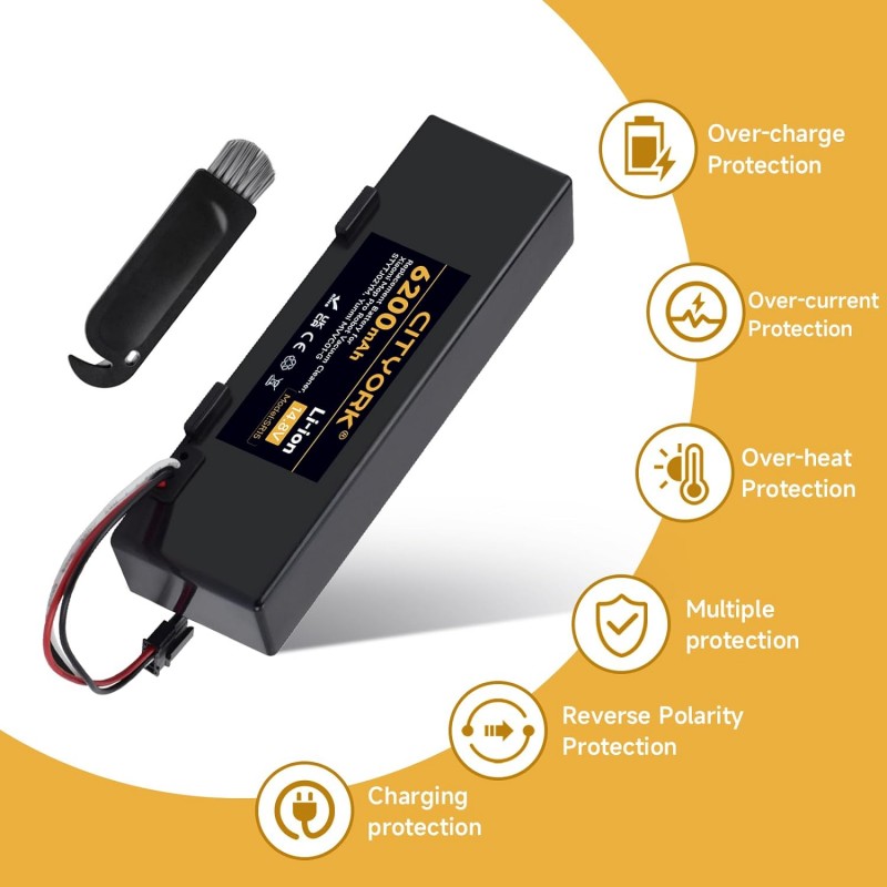 Se procura uma solução confiável para o seu aspirador robot, a nossa bateria de 14.4V e 6200mAh é a escolha perfeita. Projetada para ser compatível com uma vasta gama de modelos Cecotec Conga, Xiaomi Mijia e Viomi, esta bateria oferece não só um tempo de funcionamento prolongado, mas também assegura uma maior vida útil graças às suas múltiplas proteções de segurança.