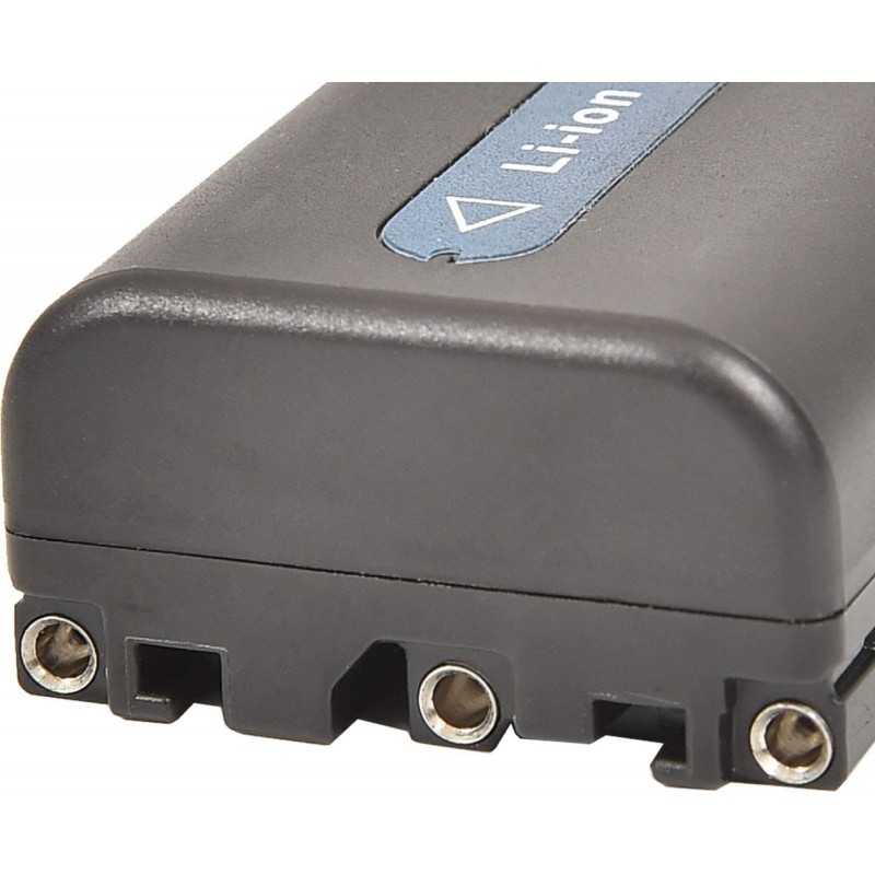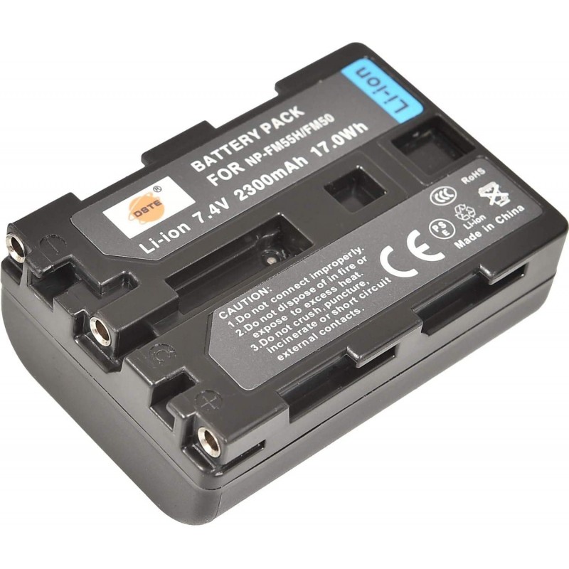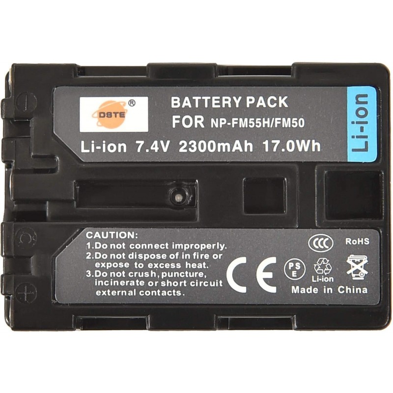 Bateria recarregável Li-ion NP-FM50 com 2300 mAh e 7,4 volts, compatível com câmaras e videocâmaras Sony. Totalmente compatível com o carregador original e com indicação do nível de bateria no ecrã.
