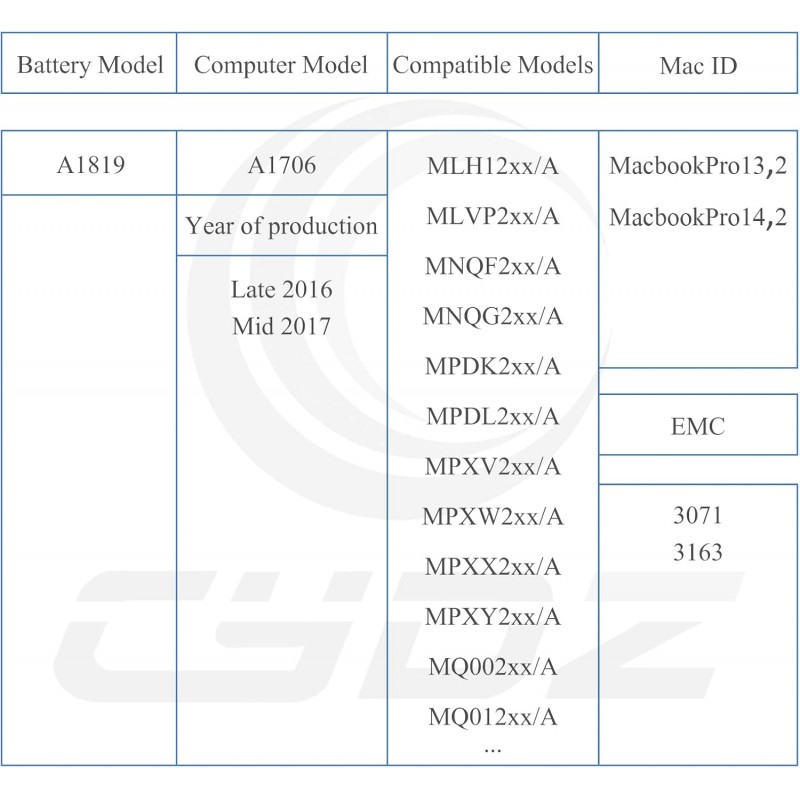 | A1706 EMC 3071 | A1706 EMC 3163 | MacBook Pro 13 |