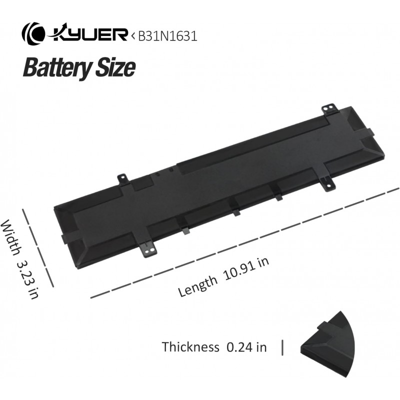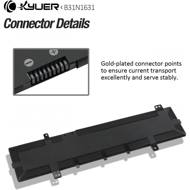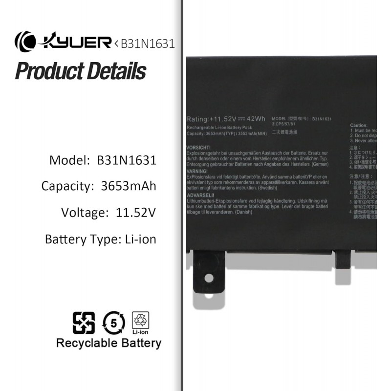 Bateria portátil B31N1631 para ASUS VivoBook 15, compatível com modelos A505, F505, S505, X505, R504, K505. Capacidade de 42Wh, 11,52V. Certificada CE, RoHS, FCC. 100% nova do fabricante, com células de grau A.