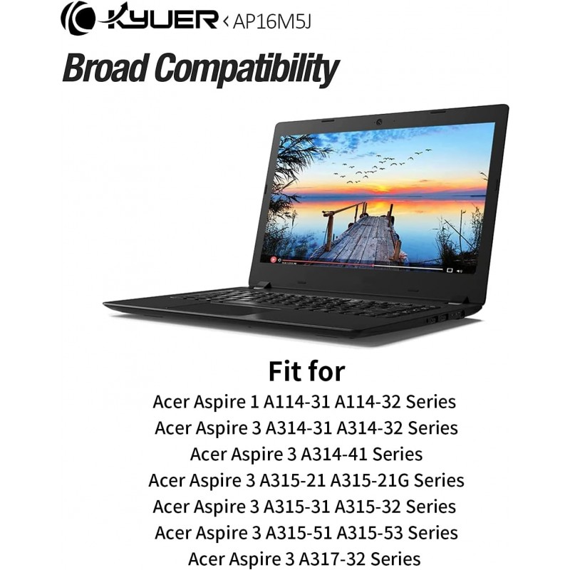 Bateria de substituição AP16M5J para portáteis Acer Aspire 1 e Aspire 3, com uma capacidade de 37Wh (4810mAh), ideal para vários modelos como A114-31, A114-32, A315-21 e A315-23. 100% nova, de alta qualidade, com proteção contra sobreaquecimento, sobretensão e sobrecarga.