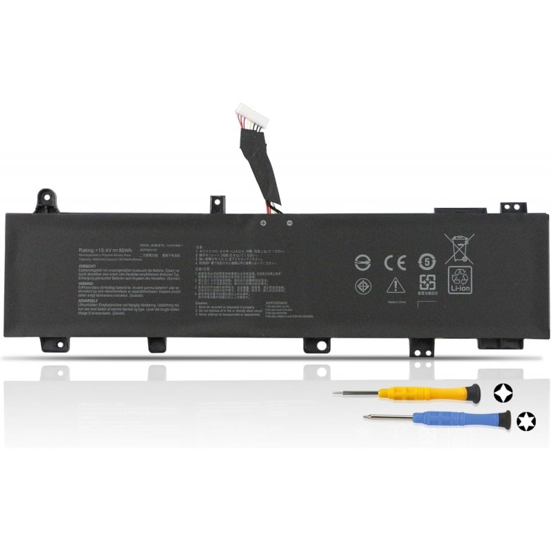 Bateria de substituição para portáteis ASUS TUF Gaming A15 e A17, garantindo alta performance e compatibilidade com vários modelos da série FA506 e FA706. Esta bateria tem uma capacidade de 90Wh e utiliza tecnologia Lítio-Ion para um desempenho fiável e duradouro.