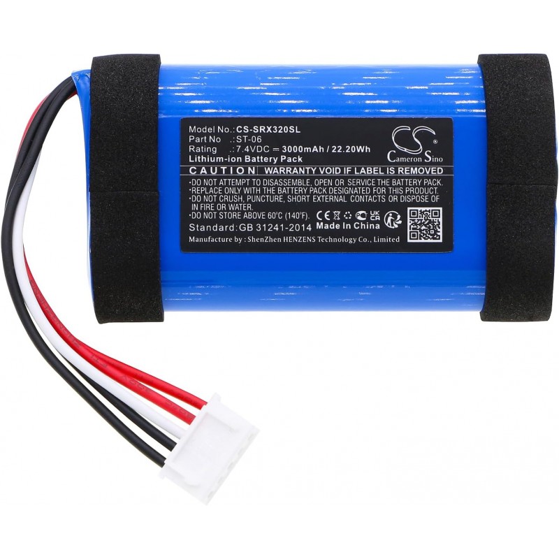 1 x Bateria de iões de lítio 7,4 V 3350 mAh (modelo CS-SRX320SL)